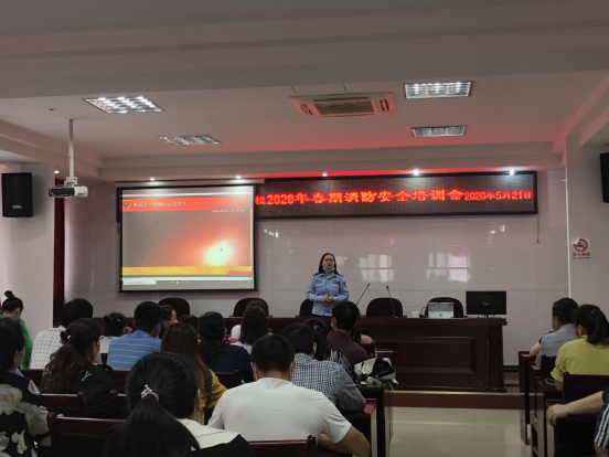 2020年5月21日,重庆市利民防火中心的唐教官来我校为教师们开展了一场消防安全培训会。主要从遇到火灾我们应该怎么办,火灾70%是电器引起的,火灾带给大家的危害,不会使用灭火器的后果以及灭火器的使用方法这几个方面对教师进行培训。