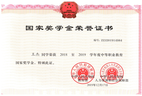选择职教,同样出彩。重庆市涪陵创新计算机学校2017级2班计算机应用专业王杰,2018级2班电子商务专业马姜美两位同学荣获国家奖学金,奖金6000元。