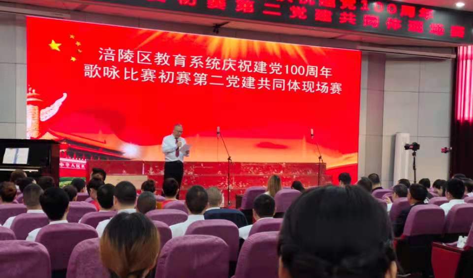 5月14日,演唱队来到了涪陵九中赛区。我校党支部献上的第一首歌曲《南湖的船 党的摇篮》,优美的旋律,饱含深情的词句,把中国共产党一大的伟大精神和历史意义表达得淋漓极致,演唱者们的泪花在灯光下闪烁,深深地打动着每一位观众;《东方红》这首老歌把大家拉回到了建国初期的年代,字句铿锵,节律跌宕,把对中国共产党一代伟人的无限崇敬表达得酣畅淋漓,全场掌声经久不息。