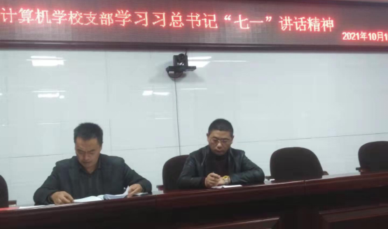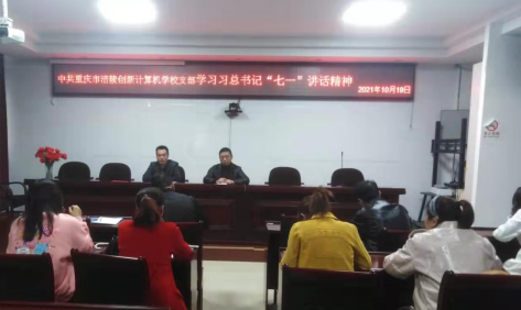 2021年10月19日下午,重庆市涪陵创新计算机学校党支部开展学习贯彻习近平总书记“七一”重要讲话精神。本次活动由党支部副书记任传良同志主持。我校全体共产党员和建党积极分子参加了这次活动。活动设立在我校大会议室举行。