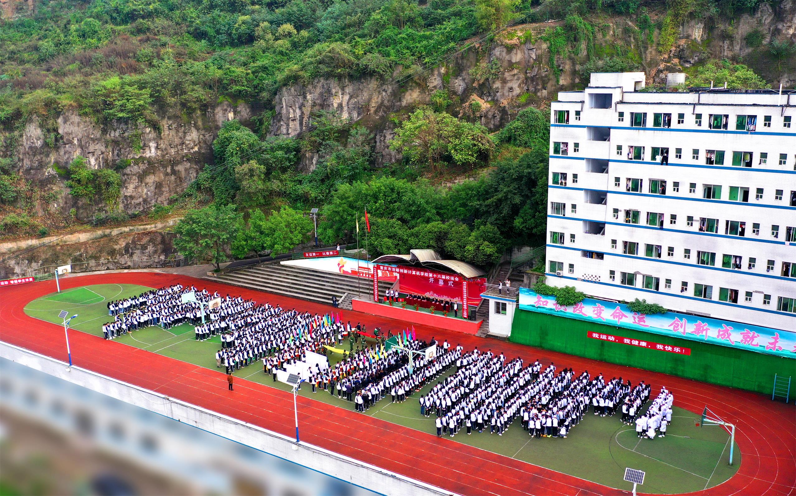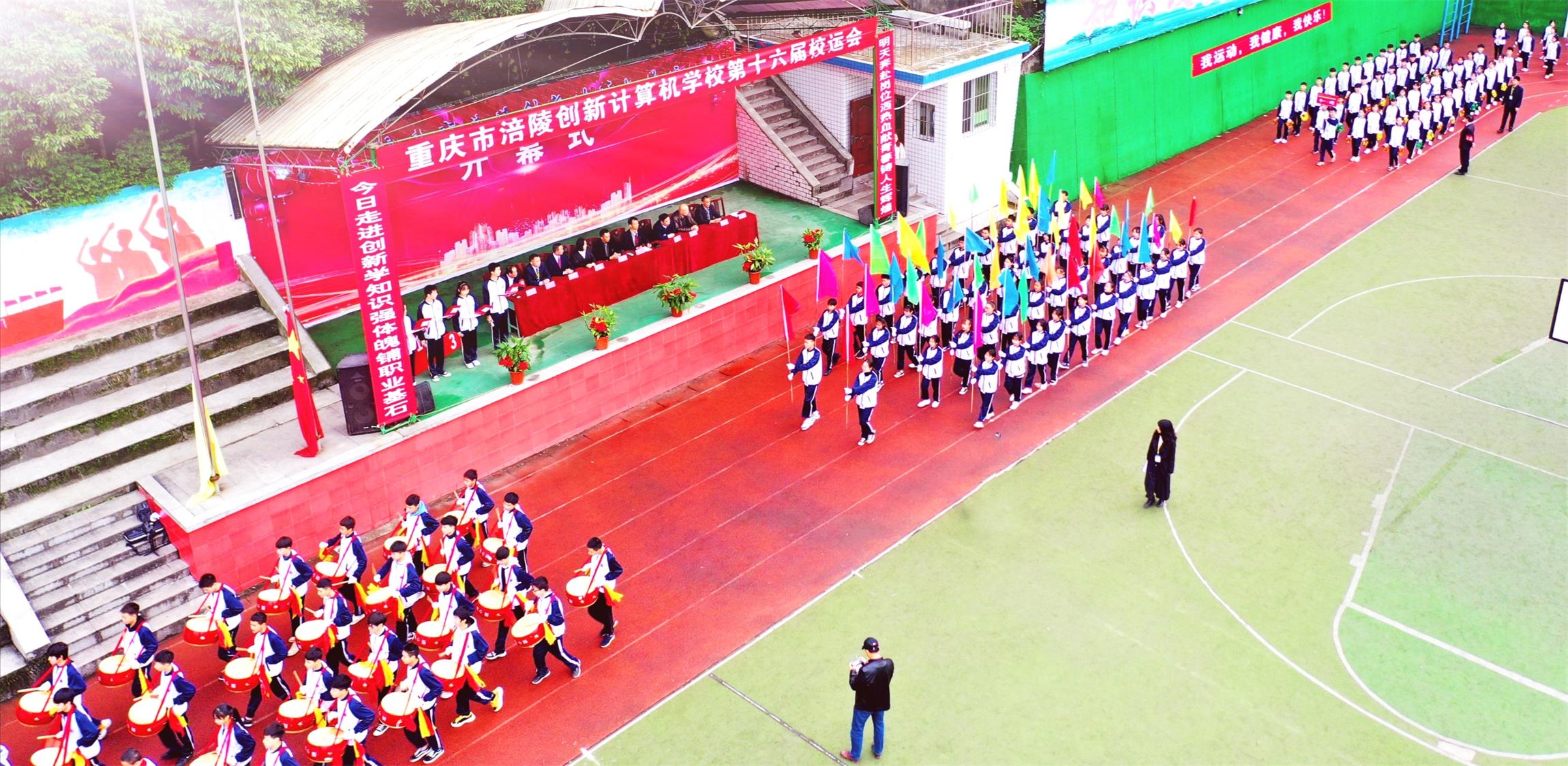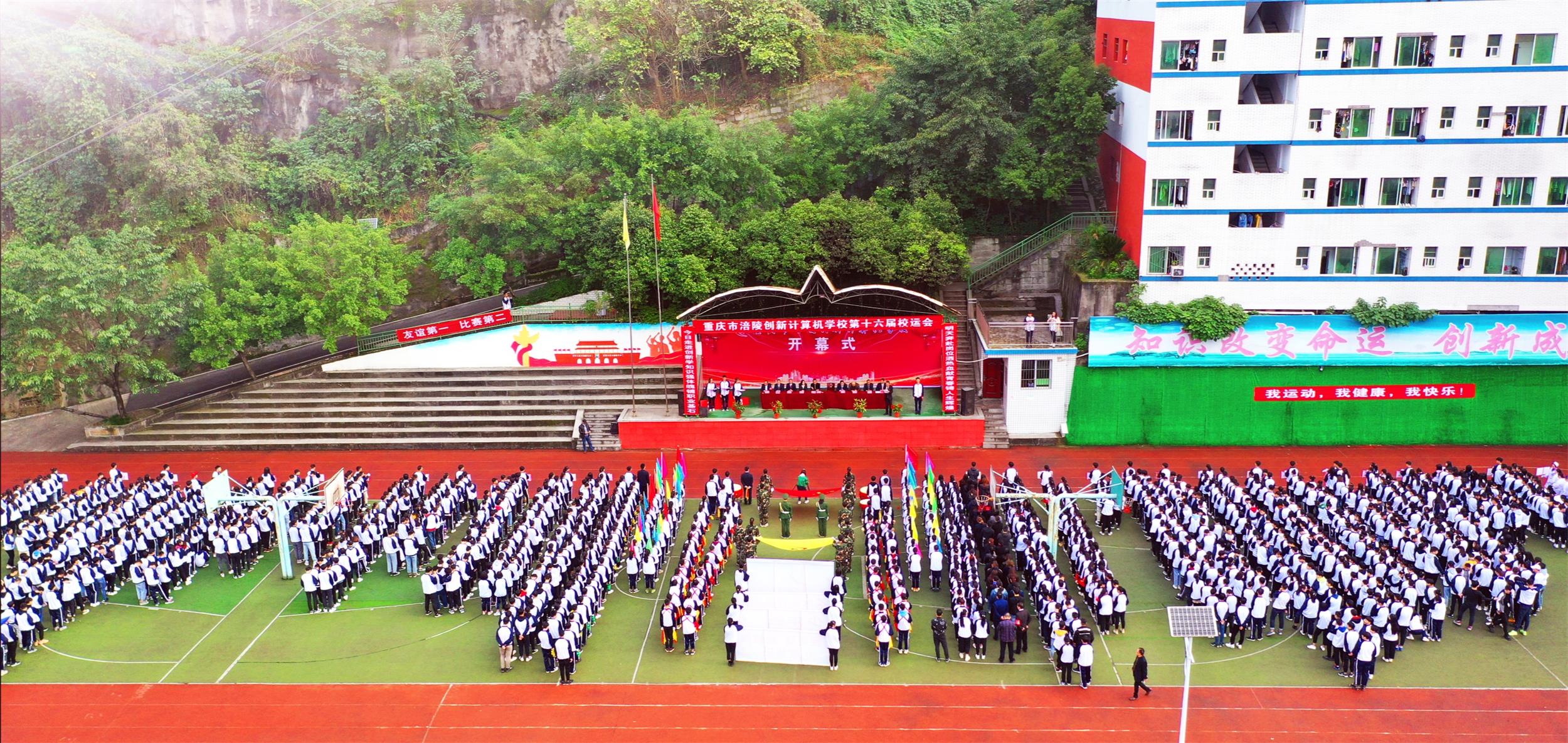 2019年11月14日,重庆市涪陵创新计算机学校第十六届校运会开幕式在运动场隆重举行。本次校运会从11月14日至11月15日,为期2天。