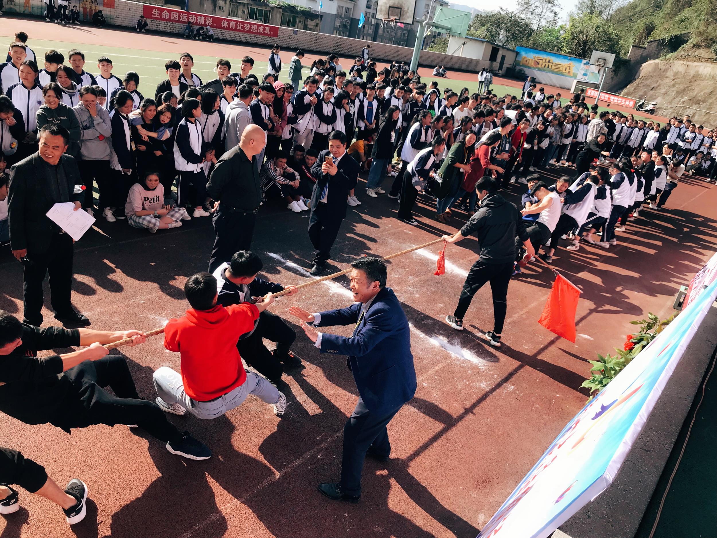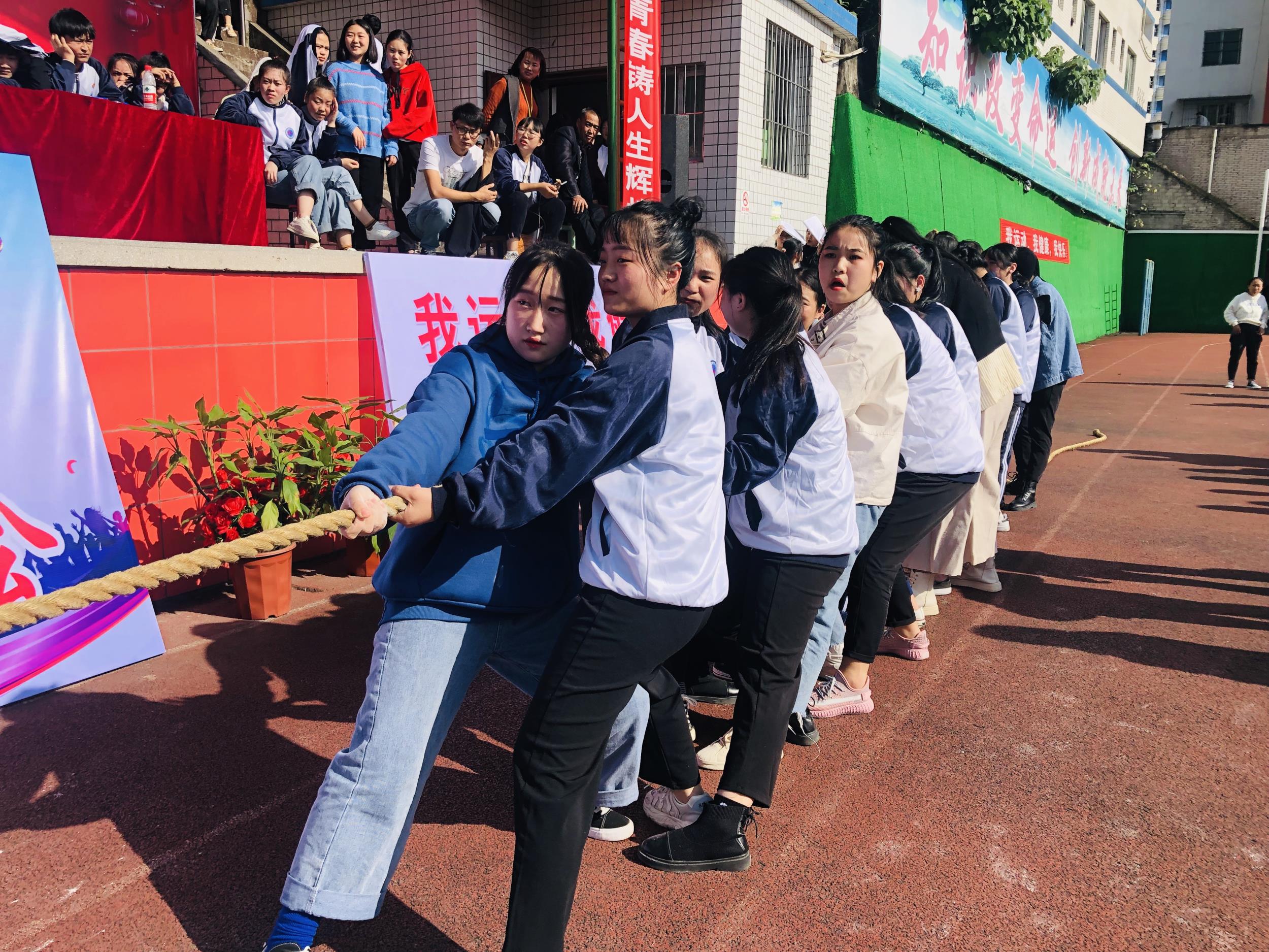 下午,拔河比赛同学们使出了浑身的劲儿只为了这一刻能赢,决出了前16强;50米接力赛,只看见同学们的身影在操场上来回穿梭,争分夺秒,旁边加油的同学也不甘示弱,一声高过一声。