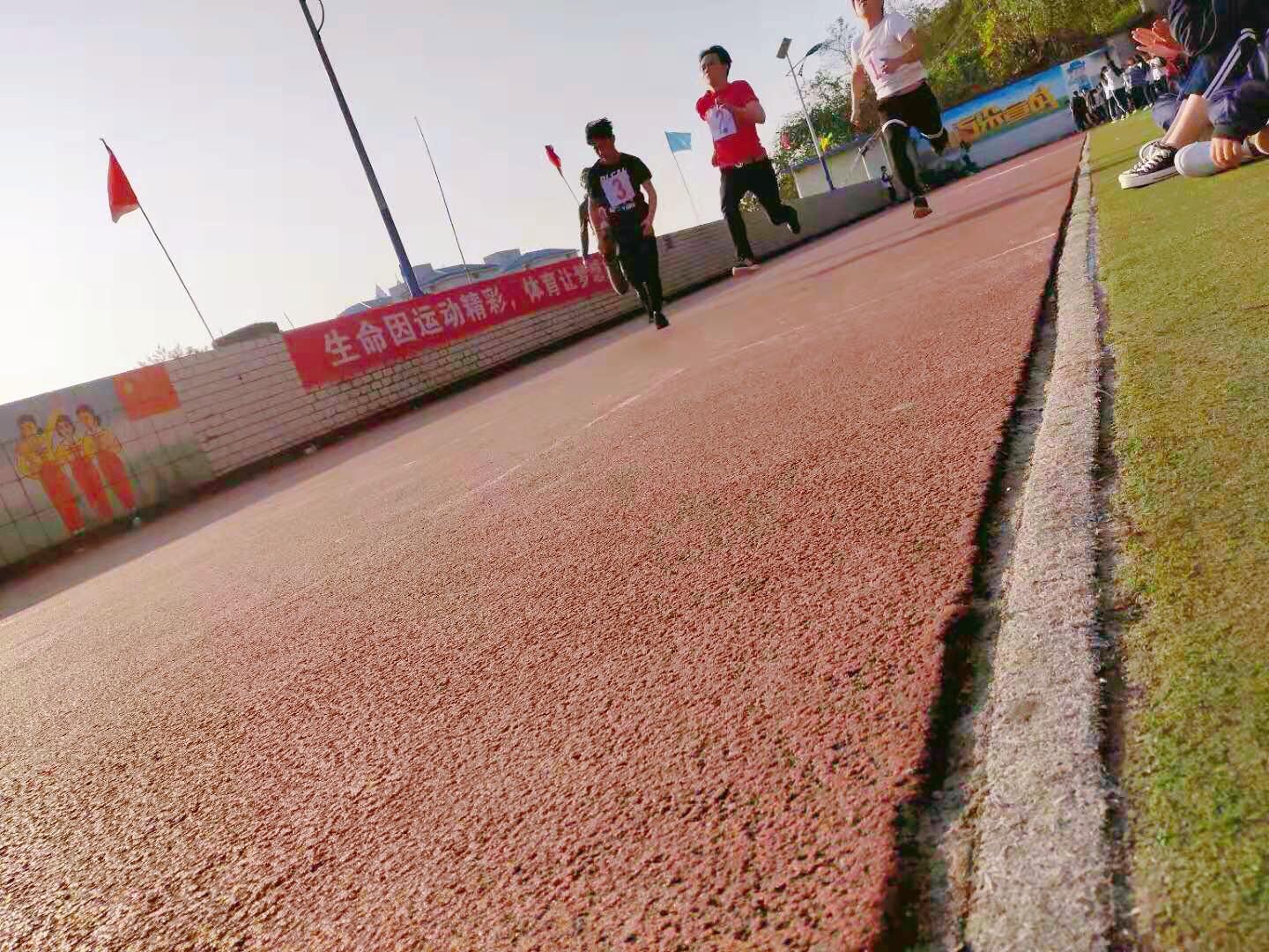 参加男女子一百米的同学,犹如猎豹,拿出了他们最快的速度奔向终点;在傍晚的时候用男女子800米结束了今天的运动会,运动员们虽精疲力尽,但脸上挂满了笑容,这应该都是取得了自己想要的成绩。