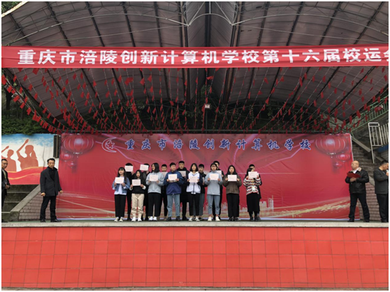 2019年11月22日,重庆市涪陵创新计算机学校在运动场举行了隆重的校运会颁奖仪式。