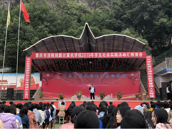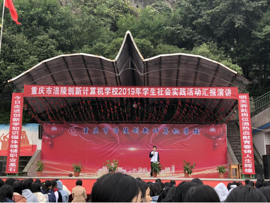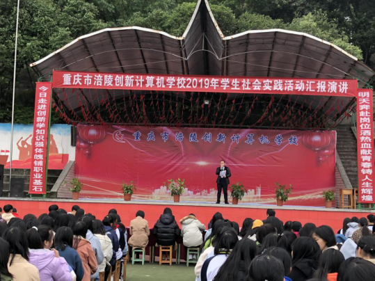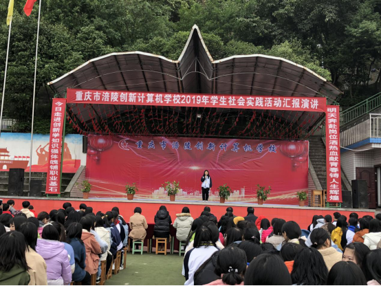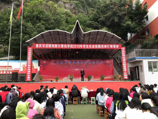 2019年11月28日,重庆市涪陵创新计算机学校组织全校师生在操场举行了2019年学生社会实践活动汇报演讲。