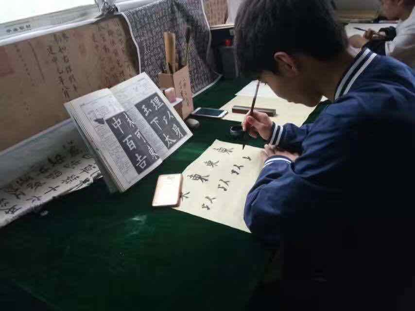 在这里同学们不但能学校相关的专业知识,学校还开设了各种兴趣社团。其中就有让我又爱又恨的——书法社。作为语文老师理应在书法上有所建树,所以学校安排我做了书法社指导老师。可是,我却不是一个合格的书法老师。第一天到书法社,社长给我展示了学生们的书法作品,看到作品的我一下子怔在那里,这些作品都各有风格,或笔力刚健或柔情万种。哪里轮得上我这个伪书法老师指点,社长着实给了我一个下马威。不过我可不怕,毕竟“弟子不必不如师,师不必贤于弟子,闻道有先后术业有专攻如是而已。”在创新计算机学校的学生们总有出乎意料的一面。在书法社的日子我学到了很多书法知识,书法也有了长进。